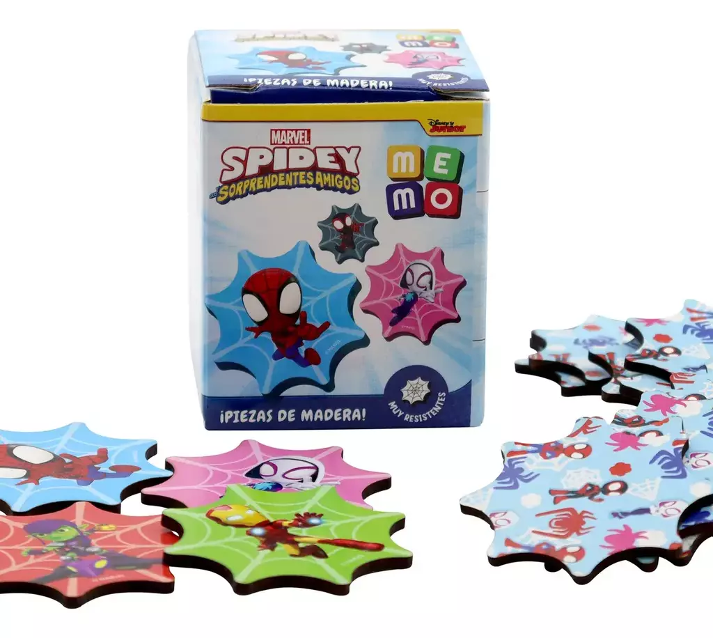 JUEGO DE MEMORIA DISNEY MEMO PRINCESAS MICKEY SPIDEY FICHAS MADERA CONCENTRACIÓN ATENCIÓN Un clásico que nunca falla: el juego de memoria. Este combo incluye tres versiones con fichas ilustradas de Mickey, Spidey y Princesas. Cada uno trae 20 fichas de madera (10 pares). Ideal para estimular la concentración, el reconocimiento visual y la memoria de manera divertida y afectiva. • Juego de memoria con fichas de madera gruesas y coloridas • Incluye 20 fichas (10 pares) para encontrar y emparejar • Temáticas: Spidey, Princesas y Mickey expresando emociones • Estimula la concentración, la atención y la observación • A partir de 3 años
