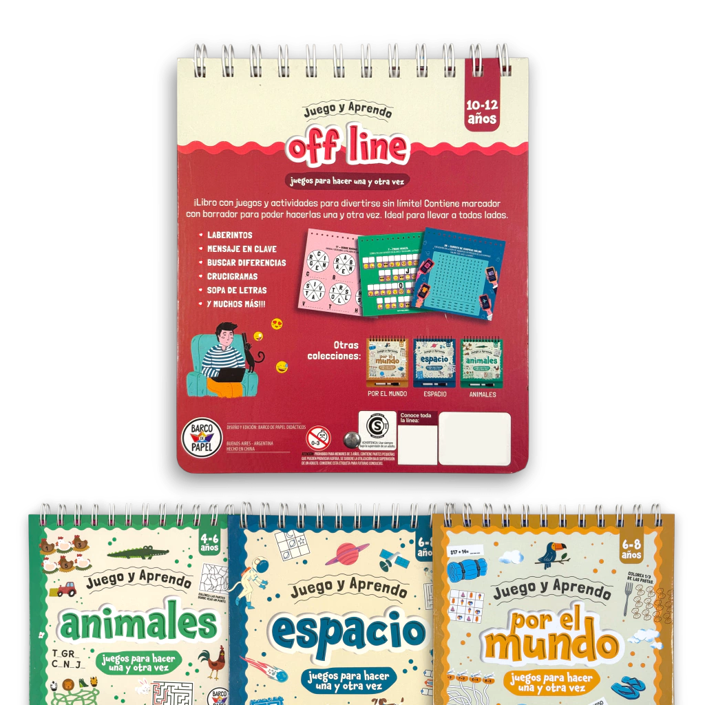 Este cuaderno de actividades propone una pausa del mundo digital para estimular el pensamiento lógico, la observación y la creatividad. Contiene 41 desafíos diseñados especialmente para chicos y chicas de 10 a 12 años, con una estética moderna y temática actual.