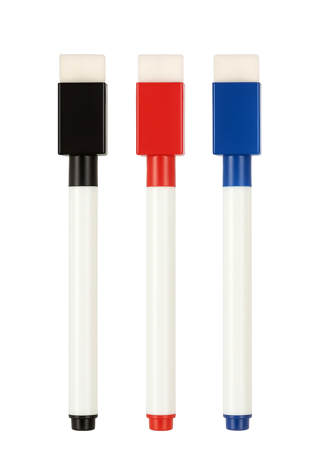 Cada marcador incluye un borrador en el capuchón para limpiar fácilmente y volver a usar.